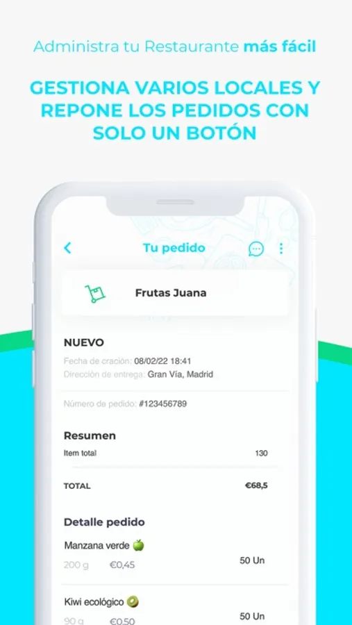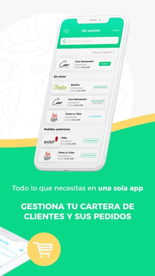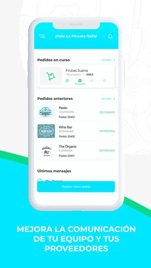 Podrás hacer pedidos a todos tus proveedores, gestionando su lista de productos y administrar diferentes locales.