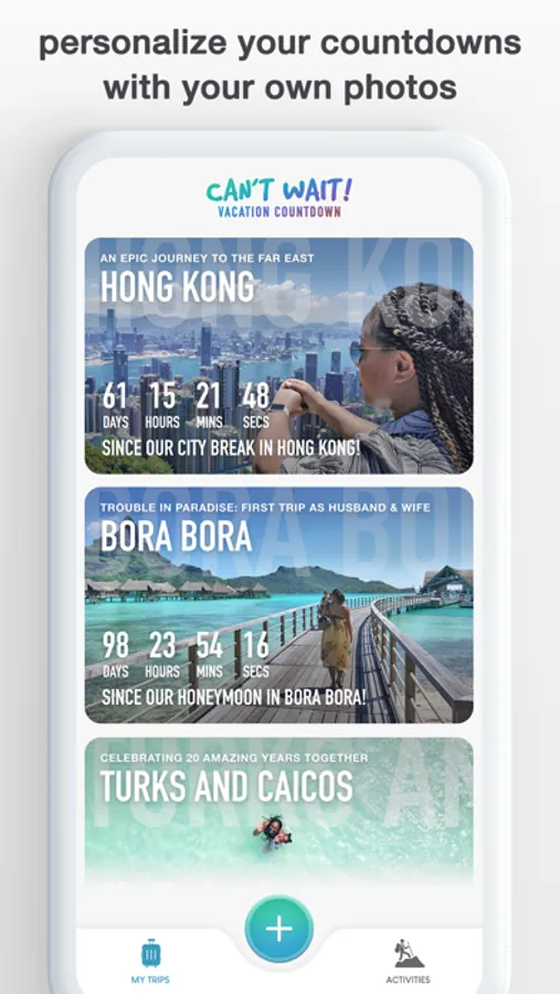 COUNT DOWN YOUR BEACH VACATION... CITY BREAK... HONEYMOON... DESTINATION WEDDING... ROAD TRIP... CRUISE... WINTER SKI TRIP... OR COUNT THE DAYS SINCE YOUR MOST MEMORABLE TRIPS.