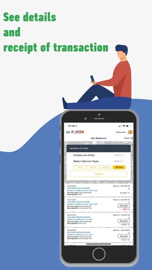 Collecting the rent; Flatix collects the rents and registers the receipts at your online account so that you know when your tenants paid the rent. If the tenant delays in rent payment Flatix sends an e-mail and SMS. If the delay exceeds 15 days Flatix sends notification through notary public. If the delay exceeds 30 days Flatix sends payment order through court of execution. Flatix does not ask for any extra service charge for all these follow up and the legal costs incurred during these procedures are paid by Flatix member.