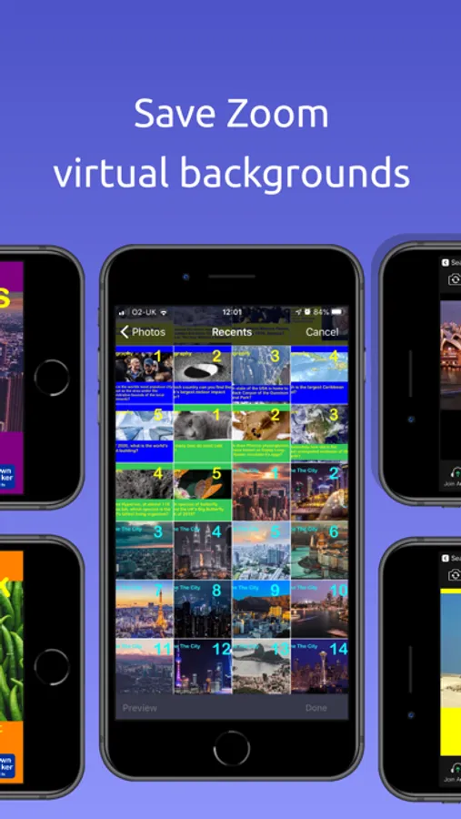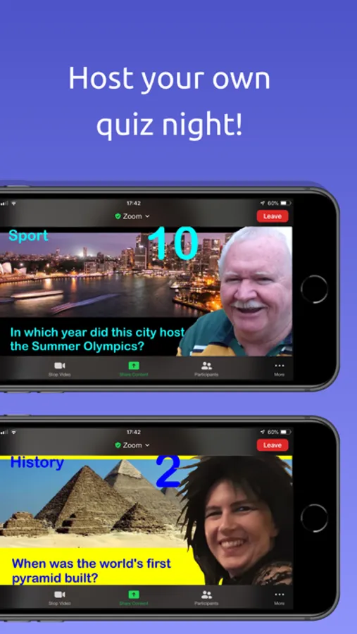 Once you’ve made your quiz, Quiz Maker will export the slides into your photo library as specially formatted virtual backgrounds that you can easily load straight into your video chat app - Zoom or Microsoft Teams, for example.
