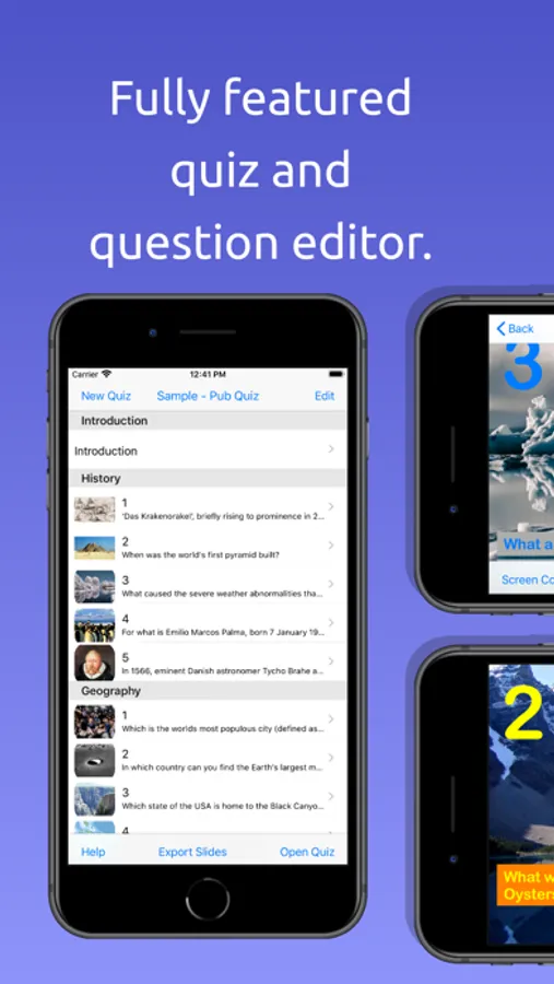 Quiz Maker is a fully featured Quiz editor that makes it simple to transform your own questions and pictures into colourful, thoughtfully designed quiz slideshows.