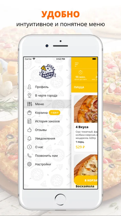 PIZZA BRAVO – это классическая итальянская пицца на тонком тесте и разнообразие начинок. Свежие ингредиенты и оригинальная рецептура делают нашу пиццу неизменно вкусной.