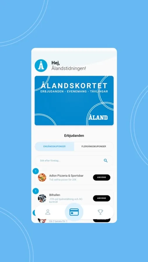 Nya digitala Ålandskortet fylls på med förmåner från butiker och på restauranger samt av olika event och tävlingar. Du utnyttjar förmånerna enkelt hos alla medverkande företag. Ålandskortet är exklusivt för Ålandstidningens läsare. För att få tillgång till förmånerna skall du vara fortlöpande prenumerant och du loggar in med dina användaruppgifter. Ålandskortesappen är gratis!