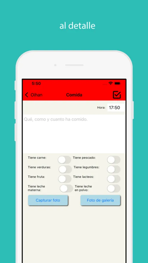 Escribe las comidas antes de dárselas al bebe y la app te avisará si tiene algún alergeno coincidente.
