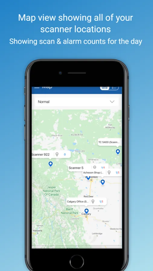 • Map based, highly accurate GPS locations of your fleet of scanners with daily counts for total scans & elevated temperature alarms