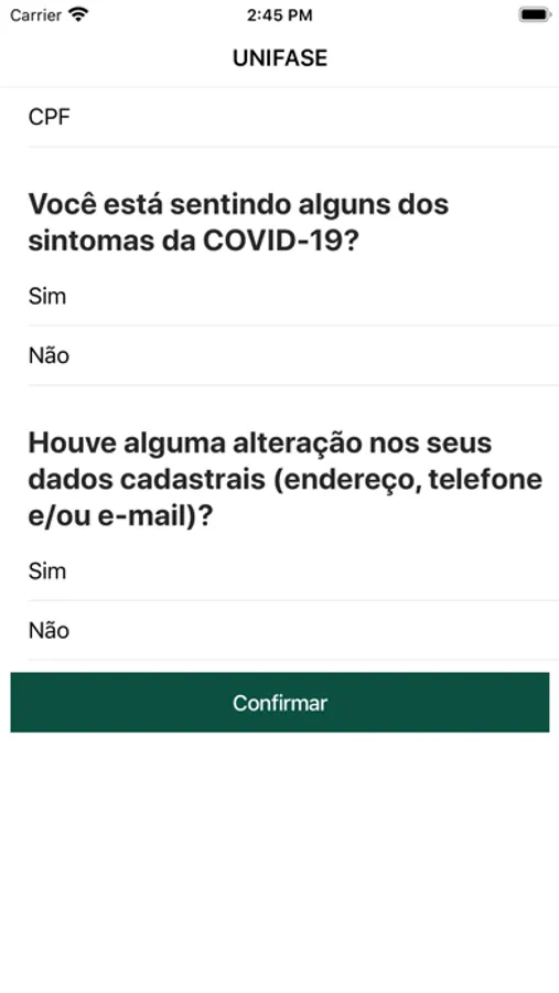 Este aplicativo faz parte do plano de retomada da UNIFASE/FMP. É uma peça fundamental para avaliar a segurança de quem ingressa no Campus.