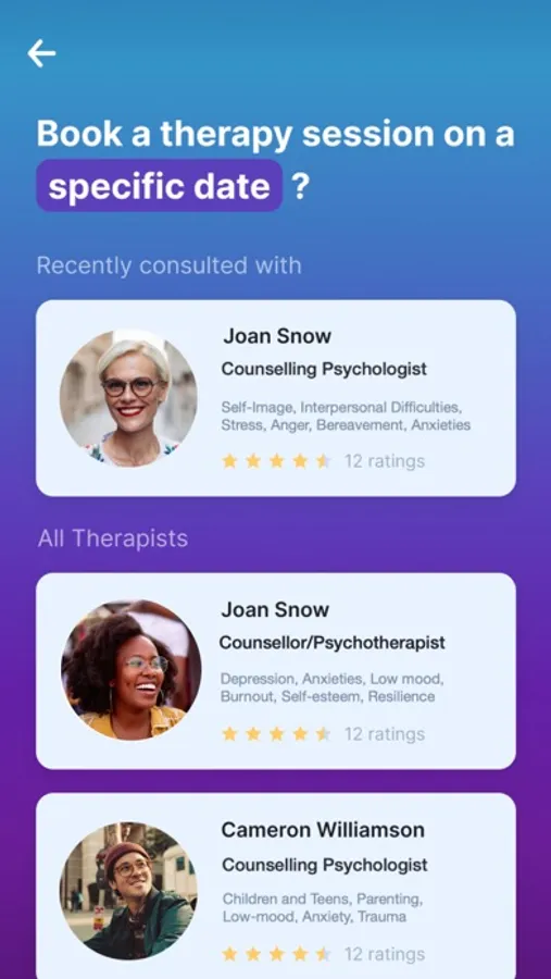 2. Browse profiles of therapists and choose your preference