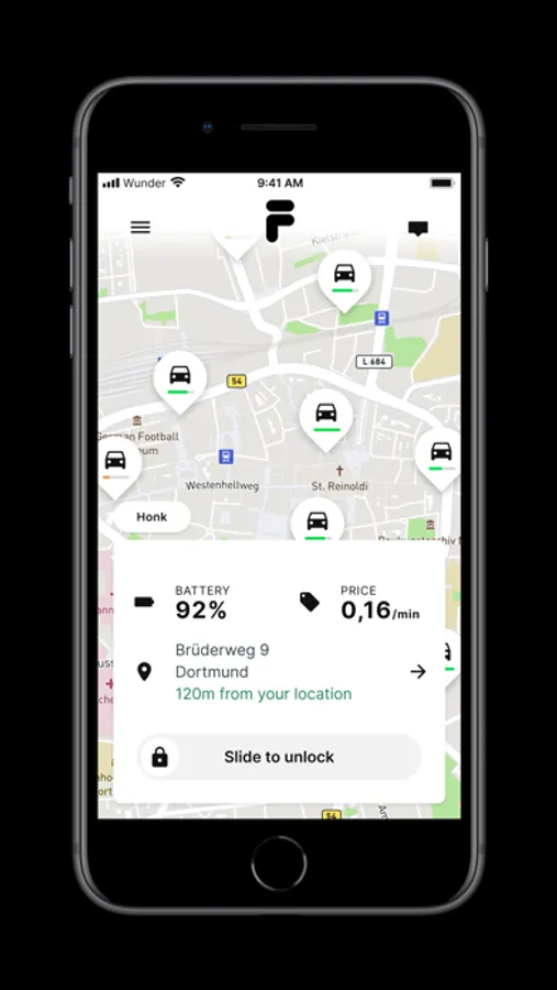 Locate the vehicle near you, slide to unlock and enjoy getting places faster.