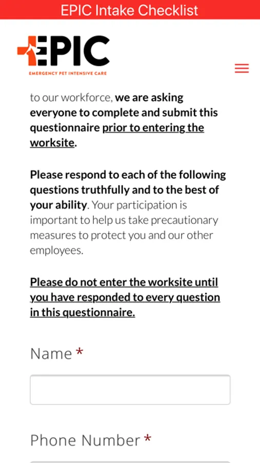 Similar to EPIC Intake Check