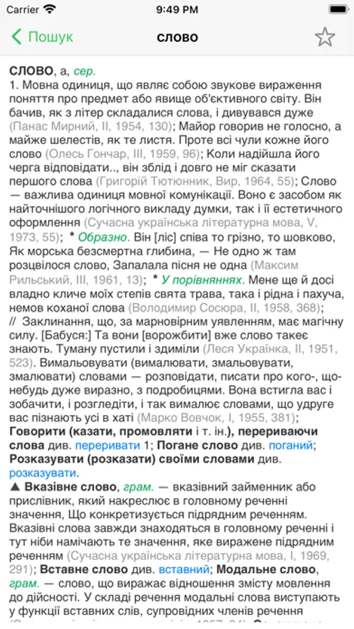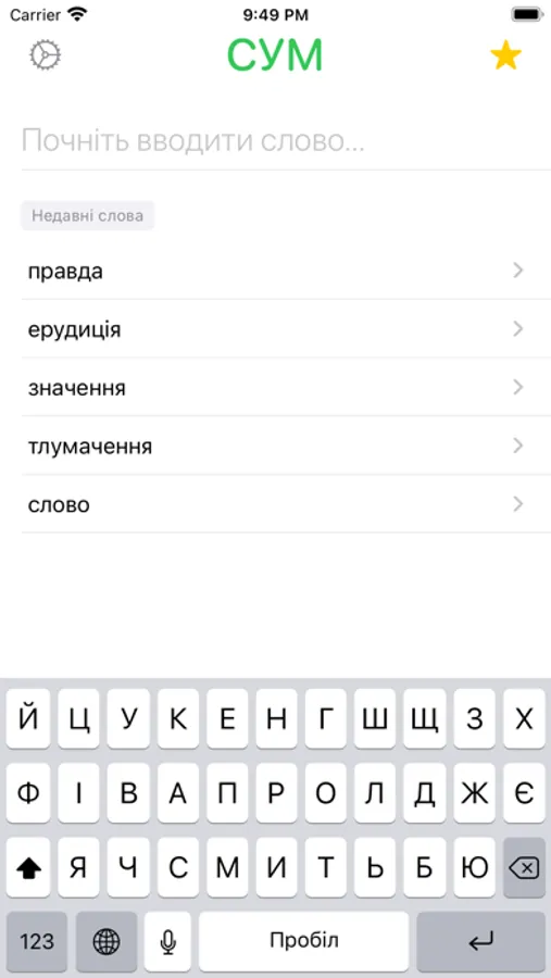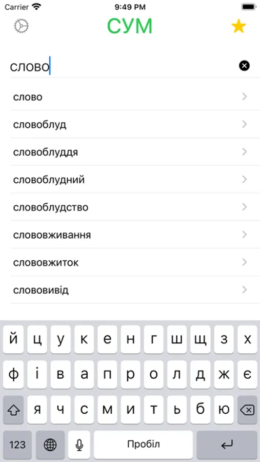 СУМ - тлумачний словник української мови, цей додаток допоможе вам уникнути суржику та підкаже правильне слово. В додатку ви можете знайти визначення будь-якого українського слова та збільшити свій словниковий запас.