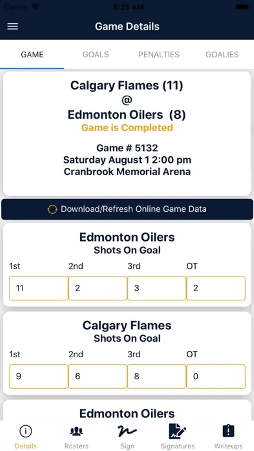 No internet access, no problem. Add Goals, Penalties and Goalie information offline and store them on your device. Sync the information as soon as you walk out of the building.
