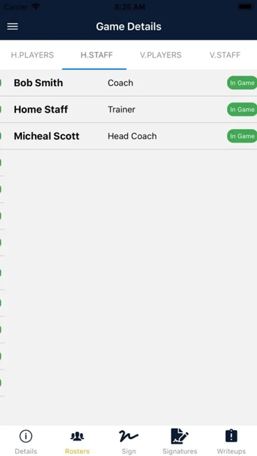 Add, edit and delete Players and Staff on your Roster. Sign-off on your Gamesheet Roster prior to the Game. View Notes and Incident Reports added by the Officials.