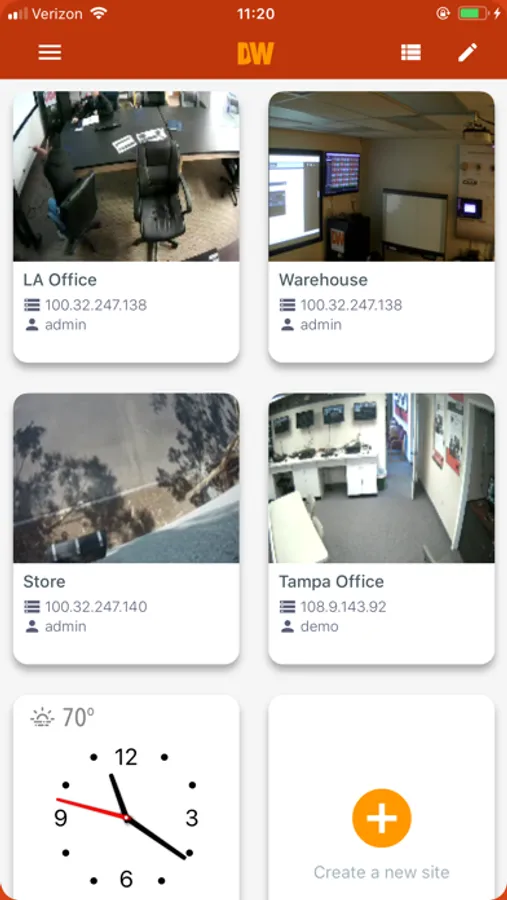 • Easily choose a site to view from a thumbnail image, grid or list view.