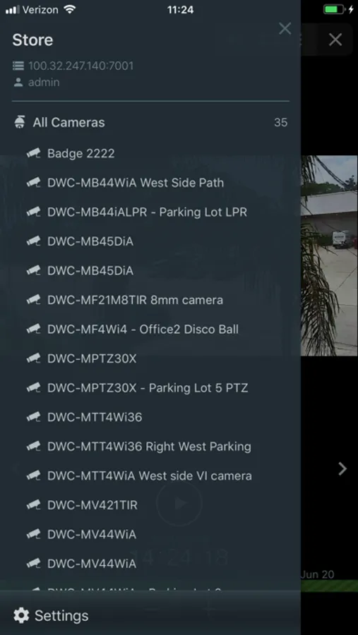 • One touch access to the site camera list.