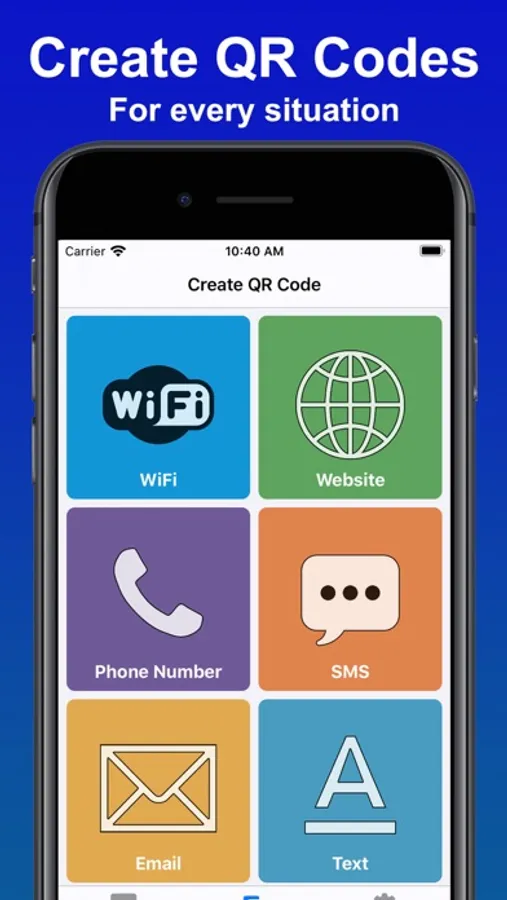 Get your clients and friends in touch with you easily by creating QR Codes that when scanned will automatically prompt people to call you or send an Email or SMS!