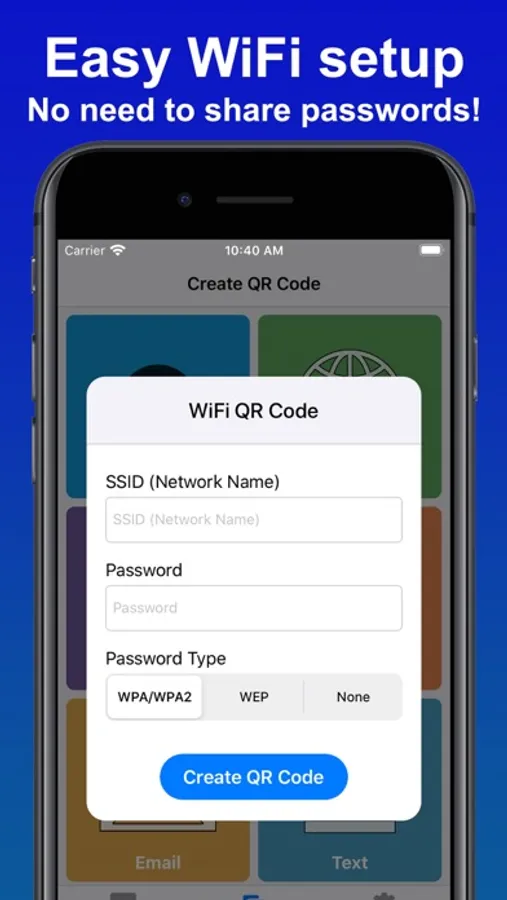 Wouldn't it be awesome if your friends or clients could connect to your WiFi network without having to type a password that sometimes even you forget? WiFi QR Codes are a simple and convenient way to share your WiFi! Generate your code and print it, then people will connect automatically just by pointing their cameras to your code! It works like magic!