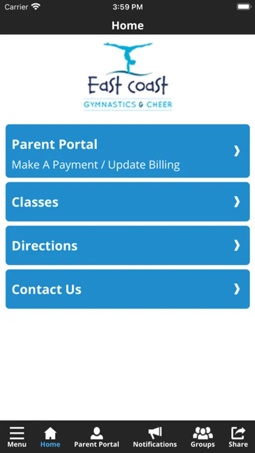 The East Coast app is an easy-to-use, on-the-go way to access everything East Coast Gymnastics & Cheer has to offer right from your smartphone.