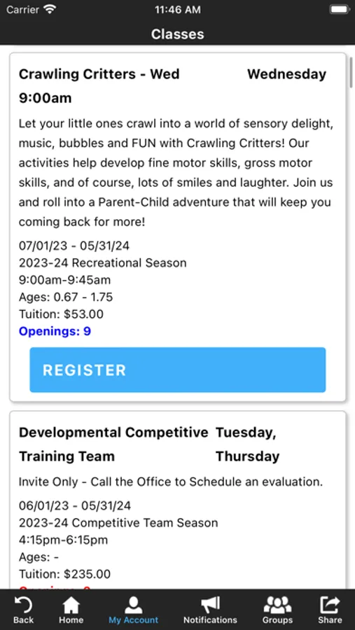 - Have a class in mind? Search by program, level, day, and time. You can register or even put yourself on a wait list.