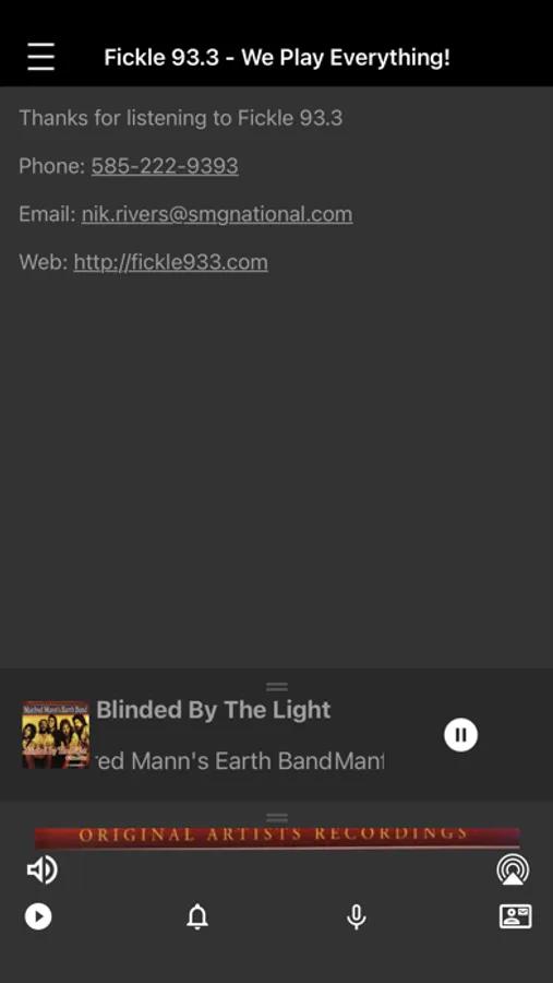 FICKLE 933's App makes it easy for you to listen to us wherever you are. Just press play and leave the programming to the FICKLE 933 music picker. The selection is not researched or formatted any more than a coin flip. When you want the largest selection of songs possible, it doesn't get larger than FICKLE 933, WE PLAY EVERYTHING. And if you are into a surprise when you wake up, check out the FICKLE 93.3 ALARM CLOCK ON THIS APP AND WAKE UP FEELING FICKLE!