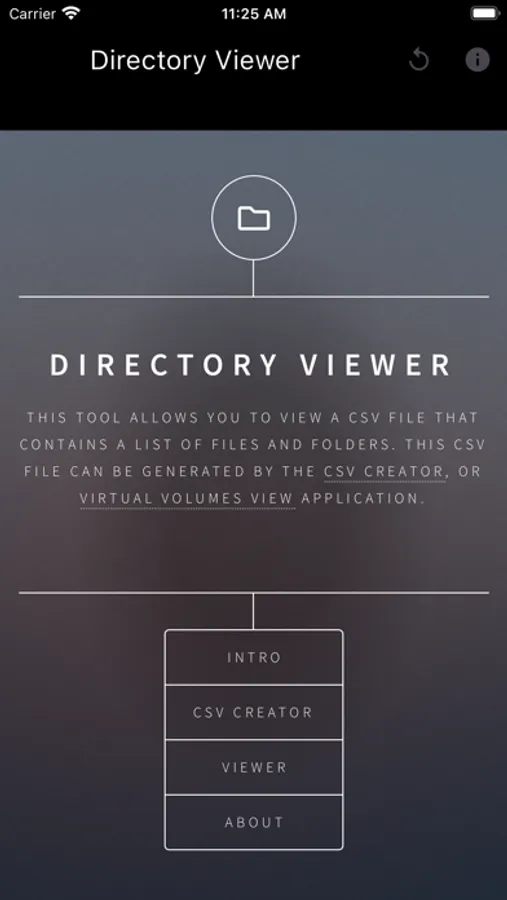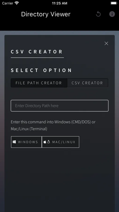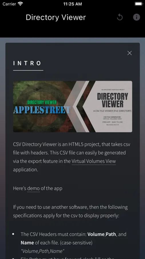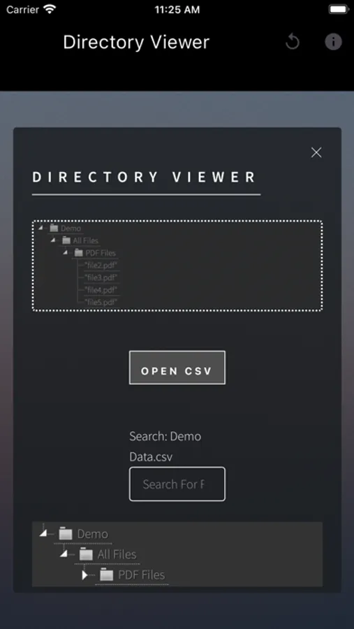 With this viewer you can view a CSV list of directories and files. You can generate this list on your Windows, Mac or Linux, and view this csv file from this app.