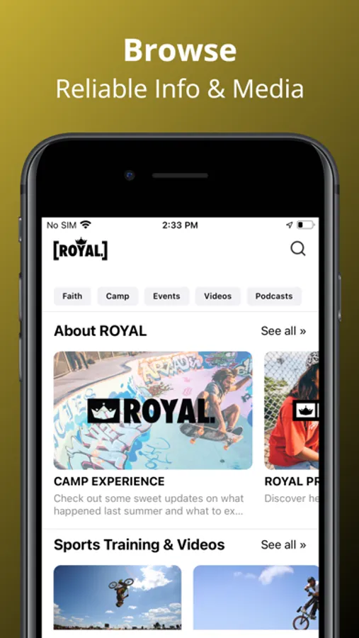 ROYAL PRO is a social platform that promotes the life-changing message of True Identity in combination with the action sports lifestyle through hosting a like-minded online community, gamification through badges and rewards, and a training grounds for up-leveling in skills, tricks, and techniques.