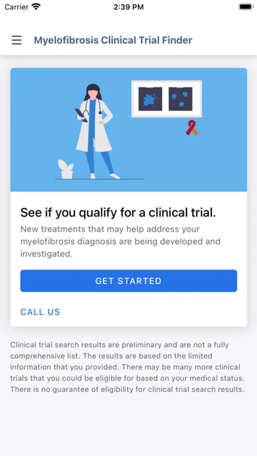 Our Artificial Intelligence (AI) based Clinical Trial Matching System, equipped with our multifaceted approach which incorporates services provided by our professional team of oncologists, oncology nurses, and patient advocates, matches your unique myelofibrosis characteristics to thousands of active clinical trials available in the United States. The app will notify you of any eligibility to enroll in a clinical trial near your home.