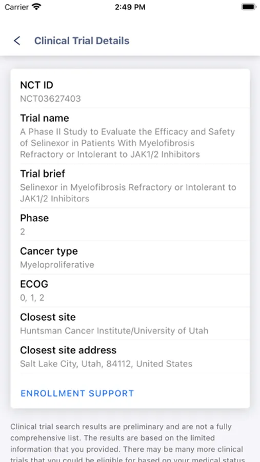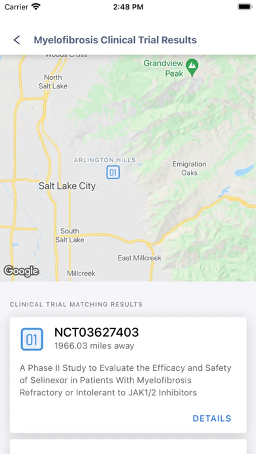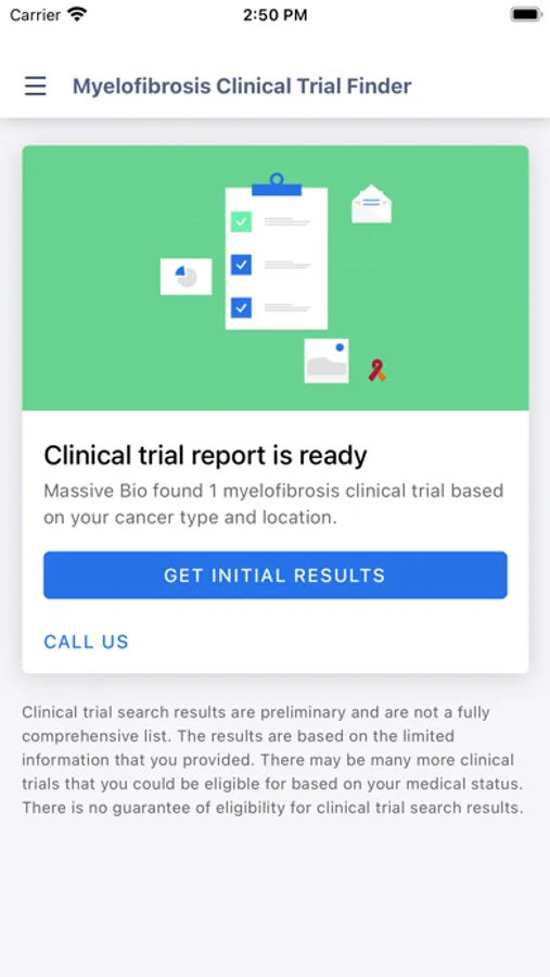 Myelofibrosis Clinical Trial Finder gives myelofibrosis patients access to novel treatment options that are going through FDA approvals so that you don’t have to sift through the options on your own. The app helps us, Massive Bio, find clinical trials specific to your location, stage, biomarker status, along with other data points, so that you can be prepared with clinical trial options.