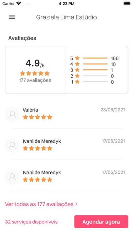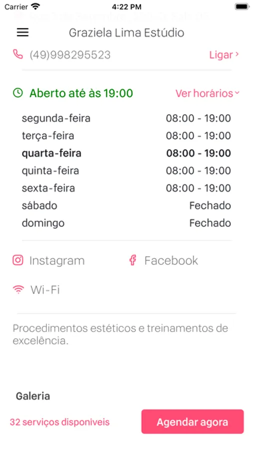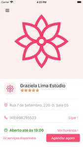 Praticidade e facilidade para você agendar seu horário no Estúdio Graziela Lima, a qualquer hora e em qualquer lugar. Com o nosso app você tem todo o conforto na palma da sua mão para consultar os horários disponíveis e fazer seu agendamento para o procedimento que desejar. Não precisa de ligações ou troca de mensagens pelo WhatsApp. É só acessar o app, escolher o serviço e horário de interesse. Simples, rápido e sempre disponível. Baixe agora e comece a usar!