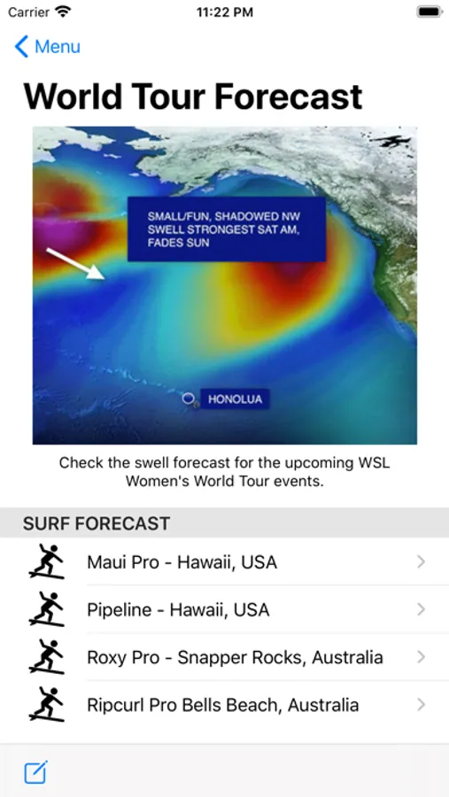 - Judge Notes: Write down key points about the surf location for the up coming heat or for a return visit. Share the notes via email or Airdrop.