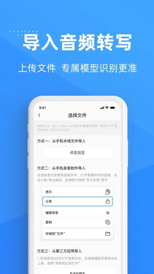 2.导入音频转写:上传多种格式的外部音频文件转写