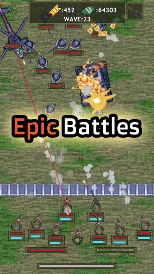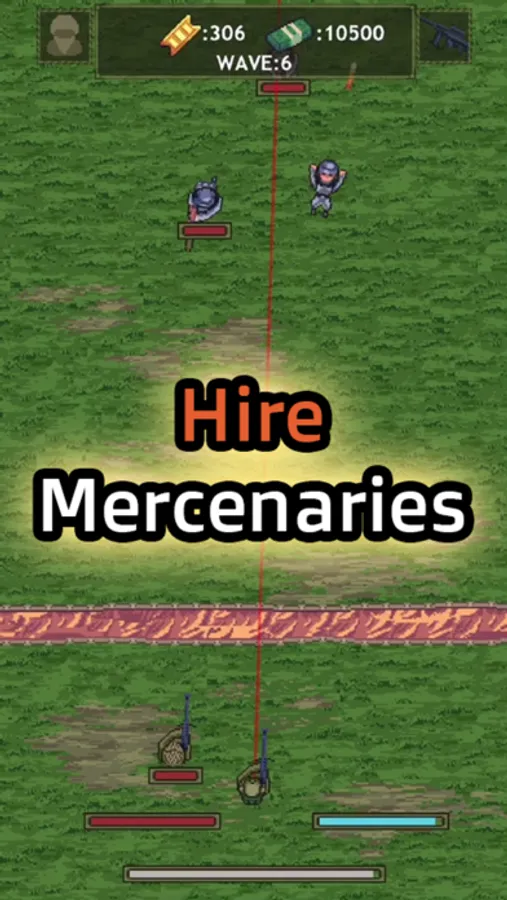 Defend different areas where enemies are attacking, buy new guns, body armor, defense upgrades, buffs, and hire mercenaries to help you defend the frontlines!