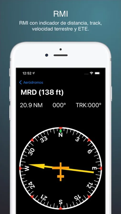 El RMI indica el rumbo (heading) utilizando el compás del dispositivo, la derrota (track) utilizando el GPS del dispositivo, la velocidad terrestre (ground speed), la distancia al aeródromo en millas náuticas y el tiempo de arribo (ETE) suponiendo que estuviéramos dirigiéndonos al aeródromo en forma directa.