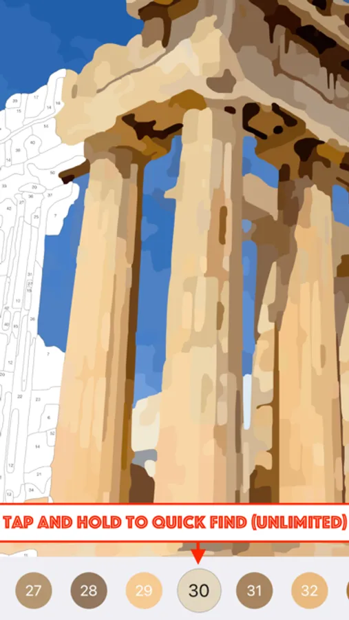 • Quick Find ( unlimited for free version): finds an uncolored shape for the current color.