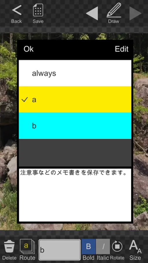 ・作成した画像は「LiveTopo」アプリでルート毎に図形のハイライト表示をする事が可能になります。