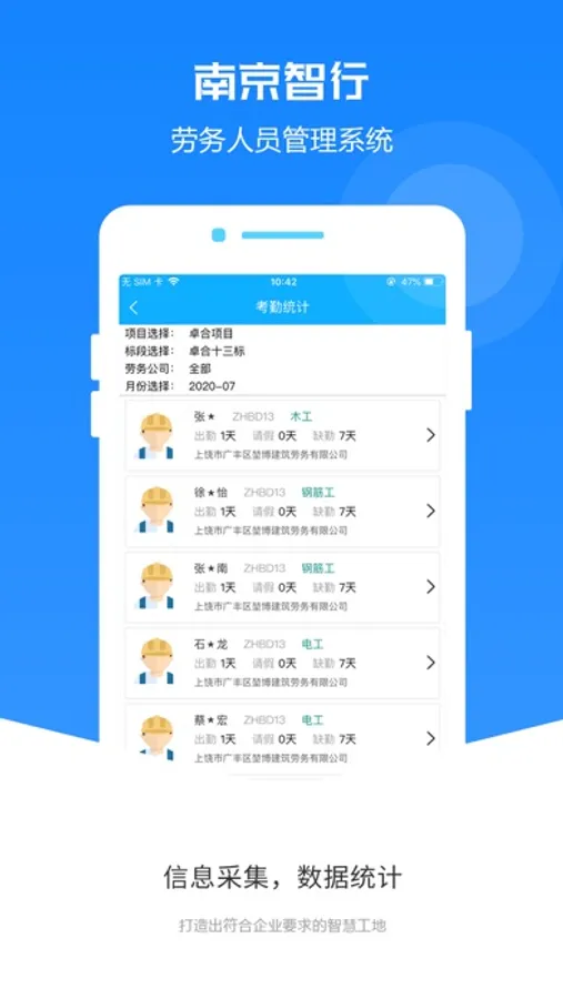 智行劳务管理是一款管理工地劳务人员上班工时、打卡、公司日常管理的APP。