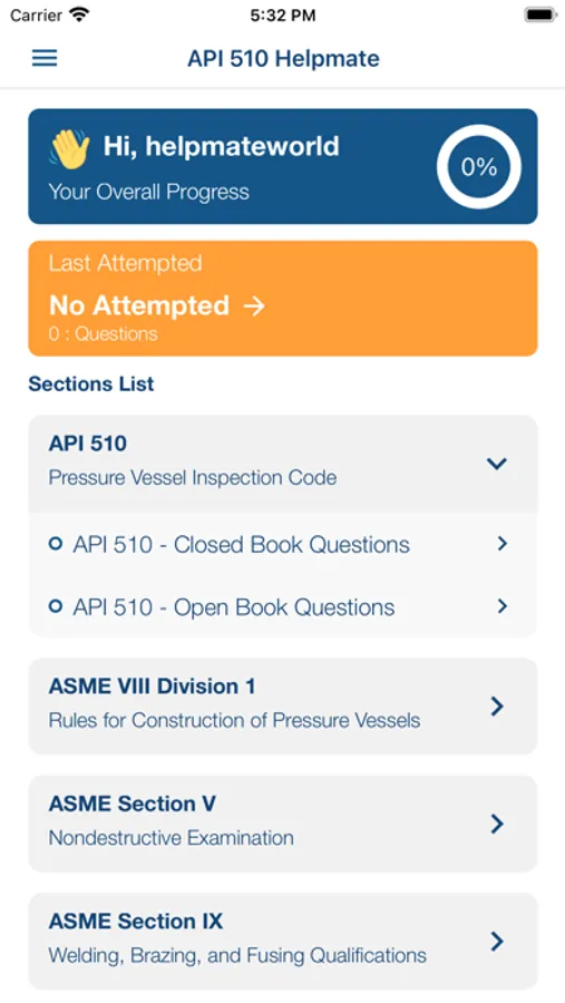 With “API 510 HelpMate” you will improve your skills through systematic learning and strengthening your overall job performance. With “API 510 HelpMate” you will be able to prepare yourself for two-part exam comprised of close and open book sections, and progress on the way to become an authorized API pressure vessel inspector. Final sections of “API 510 HelpMate” can give you a real-life experience which can significantly improve your score and increase the chances of the success you are aiming for. This app is an excellent and exclusive resource for recertification of for the API 510 Pressure Vessel inspectors who need to apply for recertification every three (3) years.