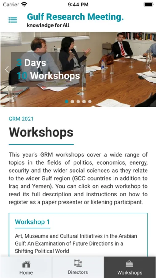 The Gulf Research Center Cambridge established the annual Gulf Research Meeting (GRM) in 2010 to provide an academic environment to foster Gulf studies and to encourage scholarly and academic exchange among those working on or interested in the developments that are taking place and defining the Gulf region and its constituent societies.