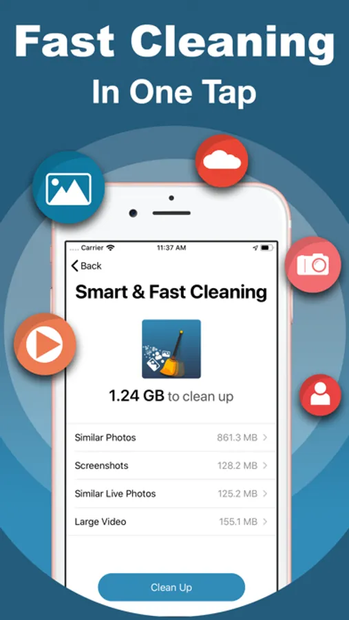Our App provides features like remove duplicate contacts, screenshots, similar Photos, Large Videos and Live Photos on your iPhone.