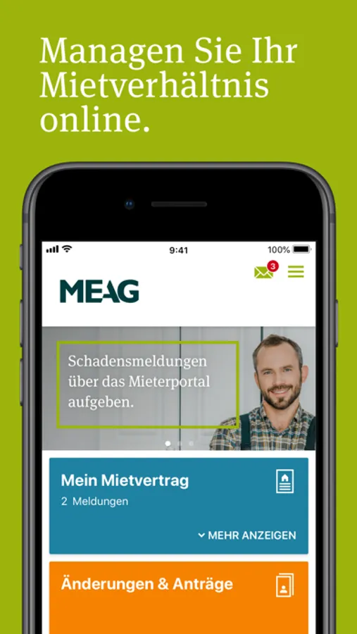 "Mein Zuhause mit der MEAG Mieterapp. Eine Plattform mit vielen Servicefunktionen rund um Ihr MEAG Mietverhältnis. Mit dieser App können Sie als Mieter der MEAG zu vielen für Sie wichtigen Themen einfach und schnell Kontakt mit uns aufnehmen.