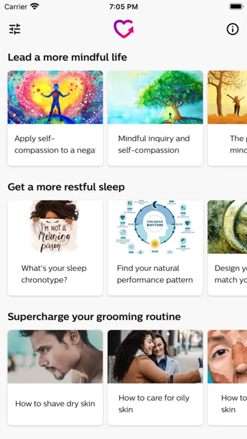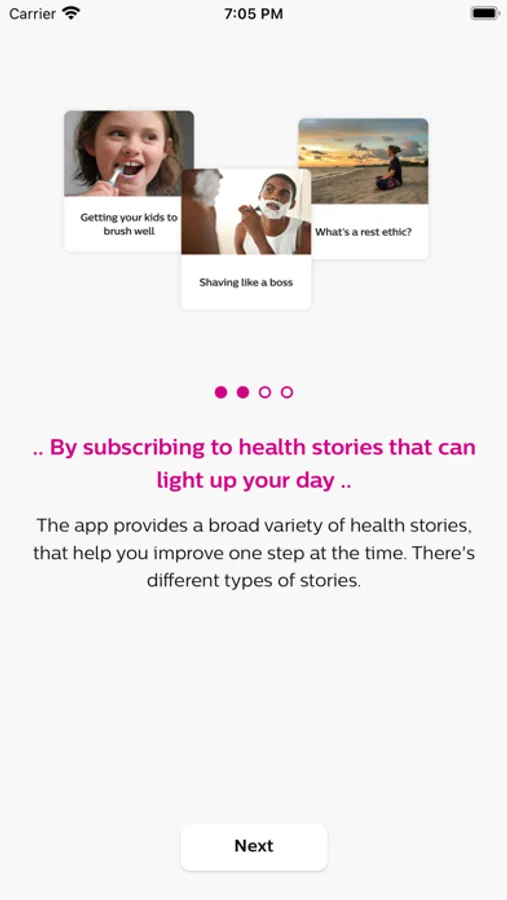 This app provides a variety of personal care stories to help you realize your goals, one step at a time. Education stories help you learn something new, skill stories teach you a valuable skill and habit stories help you build sustainable healthy habits.
