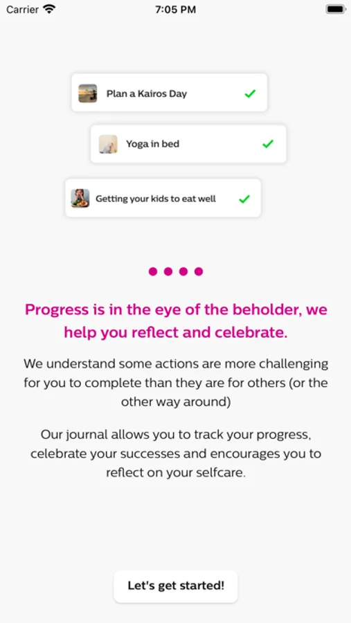 Marking milestones and celebrating are important too. The journal allows you to track your progress, celebrate your successes and encourages you to reflect on your selfcare.