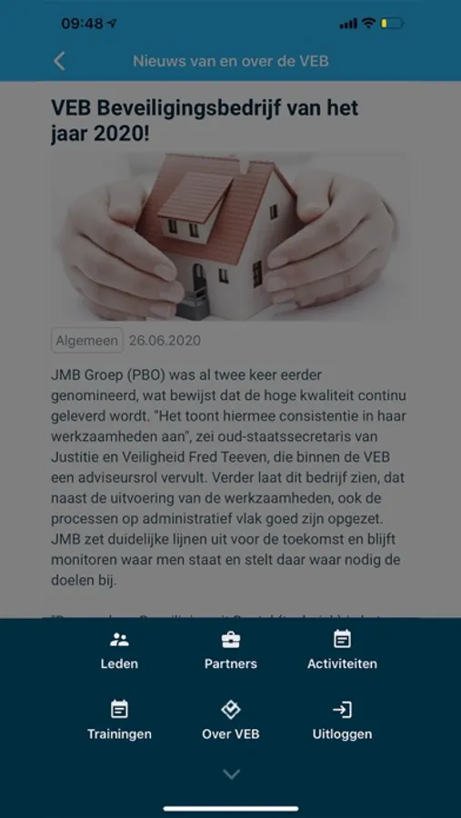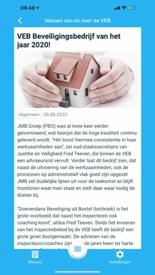 De app van de VEB (Vereniging Erkende Beveiligingsbedrijven) brengt op regelmatige basis actueel nieuws binnen de beveiligingssector. Met meer dan 700 aangesloten beveiligingsbedrijven zijn wij één van de belangrijkste brancheorganisaties binnen de deze sector. We behartigen de belangen van onze beveiligingsinstallateurs, particuliere beveiligingsorganisaties (PBO), meldkamers (PAC) en partners.