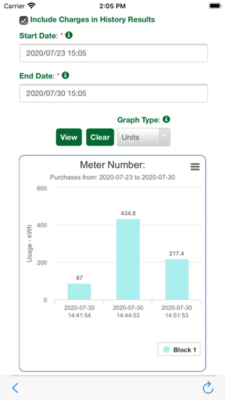 You can view your usage across all your meters; see historical data regarding purchase of tokens; print and reprint token receipts; and view graphical representations of historical activity.
