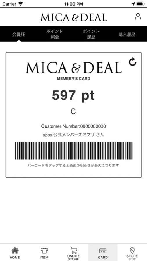 ・会員証バーコード(店頭でご購入の際にレジでご提示ください)