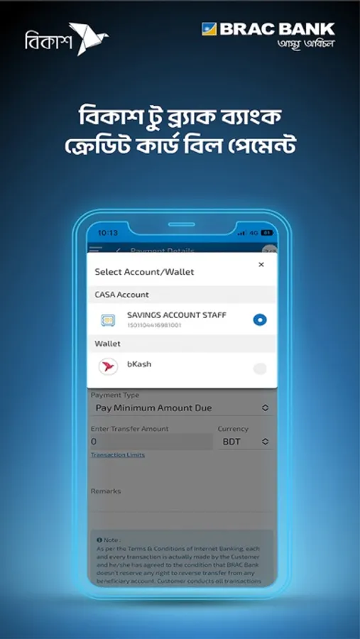 • Fund transfer to any bank account within the country (BEFTN/NPSB)