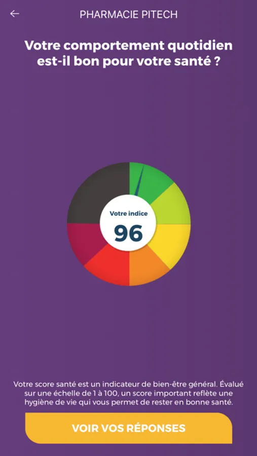 NextyPharm vous aide à améliorer votre santé au quotidien. Notre questionnaire, créé par des experts de la santé est un indicateur de bien-être général. Calculez votre score entre 1 et 100 en quelques questions. Nutrition, activité physique, rythme de vie, notre indice prend en compte tous les paramètres de votre vie quotidienne avec les indicateurs qui permettent de rester en bonne santé. Vous saurez si votre hygiène de vie quotidienne est bonne et quelles sont vos habitudes à changer pour rester en forme.