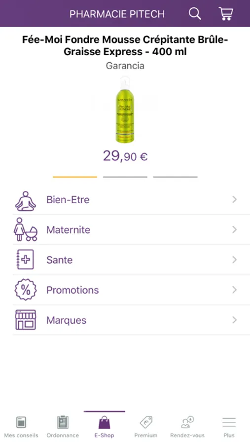 - Click & Collect : profitez d’offres et de produits disponibles dans votre pharmacie directement sur votre smartphone. Une fois vos produits choisis, une alerte SMS vous informe lorsque votre commande est prête. Passez ensuite les prendre chez votre pharmacien sous 48h.