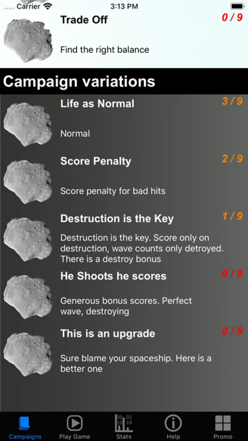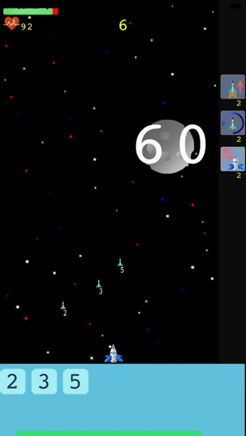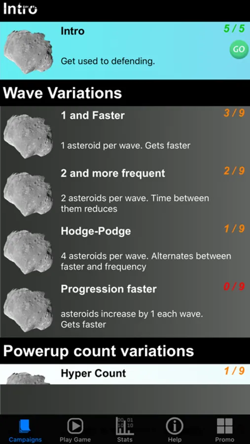 * Proceed through different waves with increasing levels of difficulty as you keep destroying asteroids. Speed and number of asteroids increase