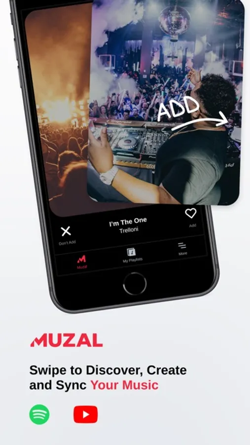 MUZAL helps you find cool songs from a great variety of genres and add them easily through swiping to your YouTube or Spotify playlists.