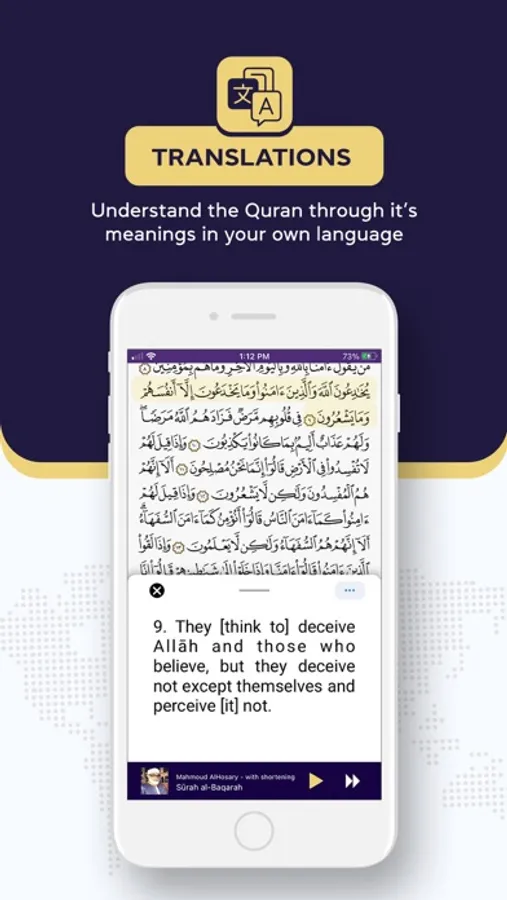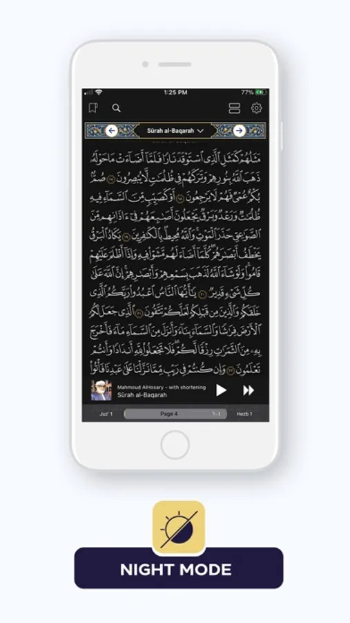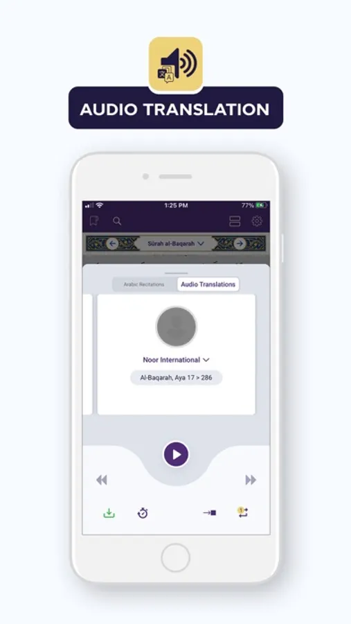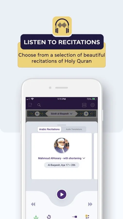 - An advanced audio player with features such as repeating the verse or range of verses, timer and others.
